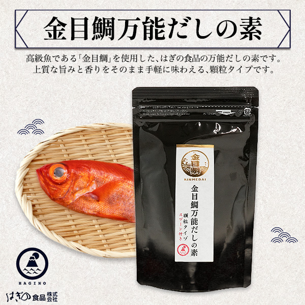 万能だしの素 金目鯛 顆粒タイプ 50g はぎの食品 ダシ 出汁 だし だしの素 顆粒だし 国産 日本産 喉黒 隠し味 美味しい 調味料 キンメダイ 魚出汁 和食 煮物 味付け 汁物 お味噌汁 すまし汁 おすまし 麺類 料理 ポイント消化 1000円以下 送料無料 食品