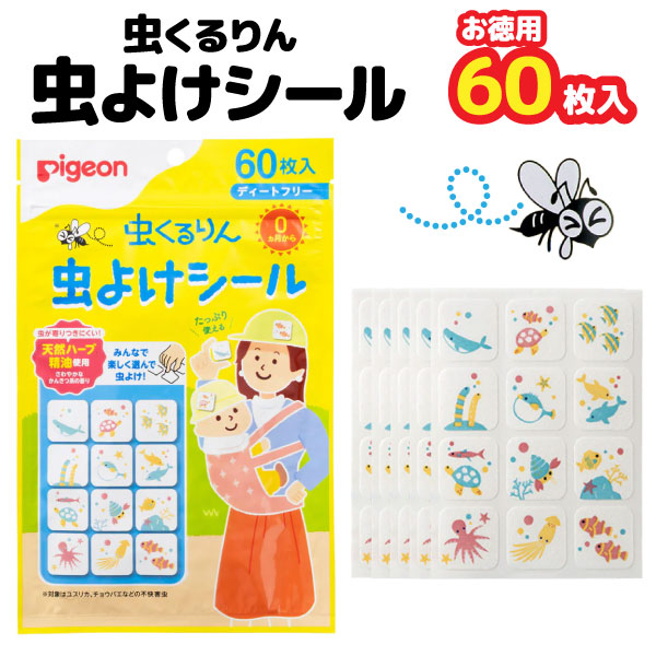 ピジョン 0歳から使える 虫くるりん 虫よけシール 海のなかま柄 60枚入 1セット お徳用 ディートフリー 【メール便可】 全1種