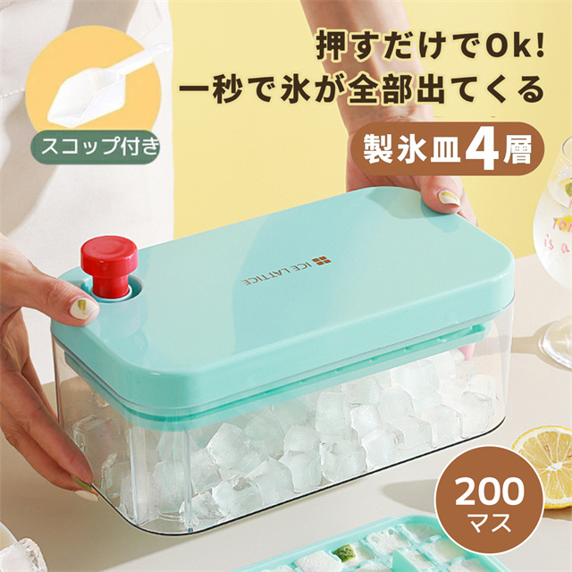 送料無料 製氷皿 製氷器 製氷機 氷作る容器 4段 大容量 蓋付き 四角氷 家庭用 小分け 200個取り 夏休み 保存ケース アイストレー 冷蔵庫専用 簡単に取り出す 漏れ防止 超低温耐性 冷たい飲み物 製氷 アイスキューブ 氷トレー