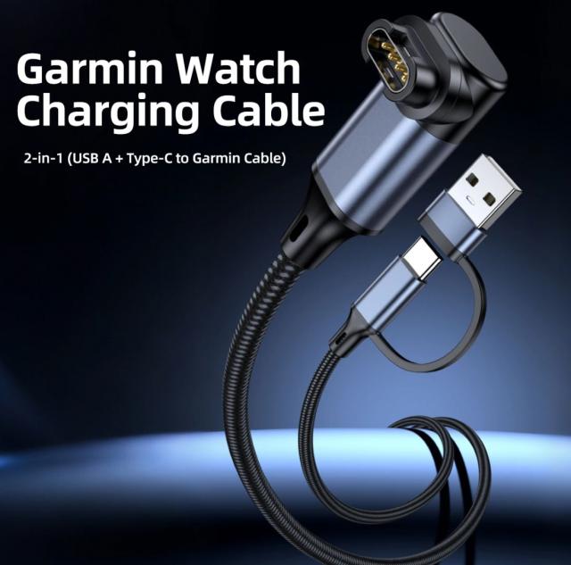 【ゆうパケット対応】Garmin watch ガーミン スマートウォッチ 充電 ケーブル 1.2m Type-C 2in1 USB-C / USB-A 耐久メッシュコード L型プラグ Approach Fenix Forerunner Venu Vivoactive Instinct ポイント消化