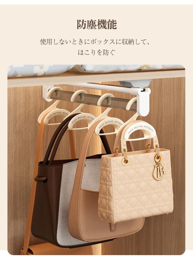 様々なバッグのハンドルがしっかり収まる設計で、収納しやすく取り出しも簡単です。