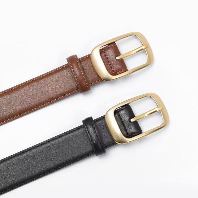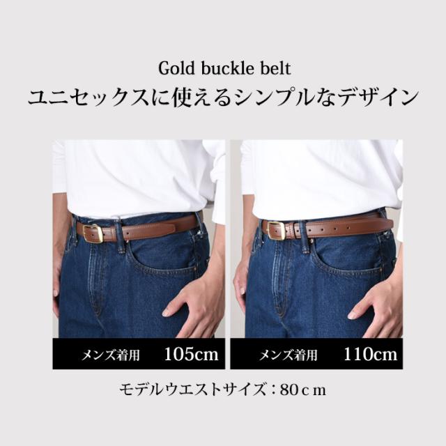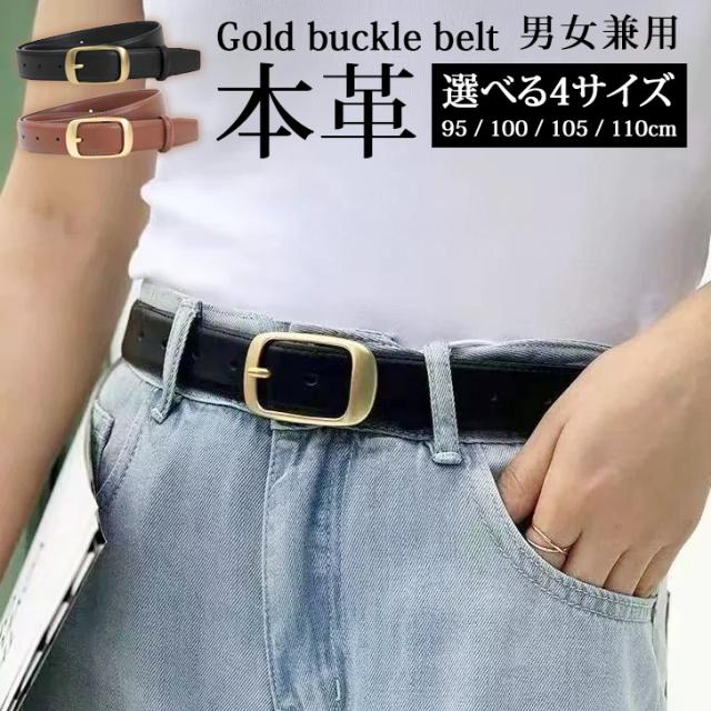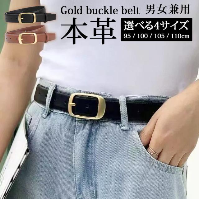 選べる4サイズ!男女兼用本革ゴールドバックルベルト