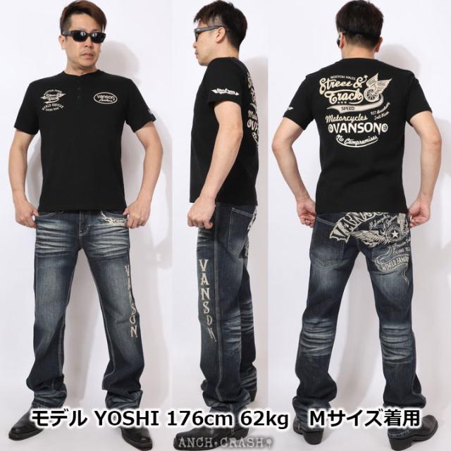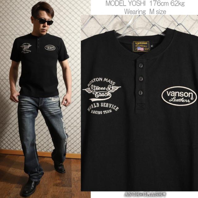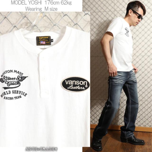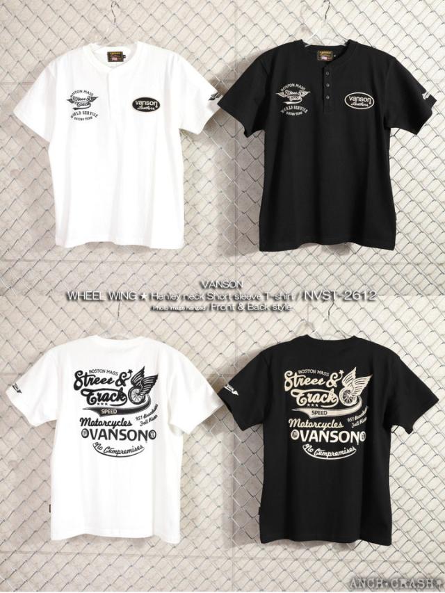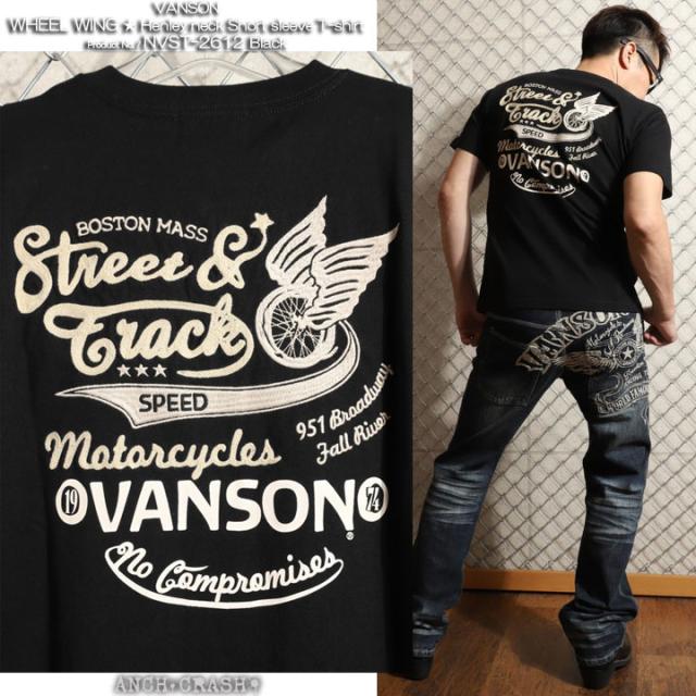 VANSON ホィールウィング ヘンリーネック 半袖Tシャツ (NVST-2612) 【送料無料】バンソン 刺繍 ワッペン