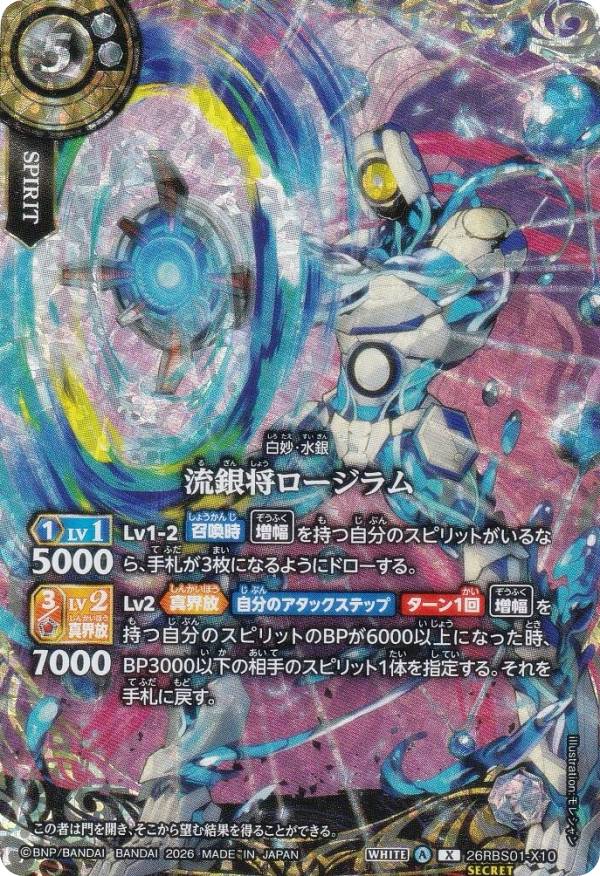 【SECRET】バトルスピリッツ 26RBS01-X10 流銀将ロージラム (Xレア) ブースターパック 創世の鼓動