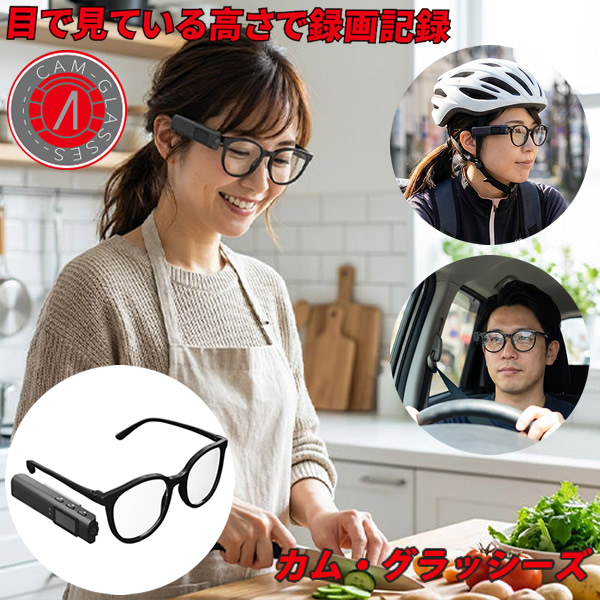 エアリア カム グラッシーズ (送料無料) ウェアラブルカメラ メガネ装着 目線録画 フルHD録画 液晶画面 小型カメラ ハンズフリー ドライブレコーダー 運転 自転車 1080P 撮影 外出 旅行 AREA CAM-GLASSES