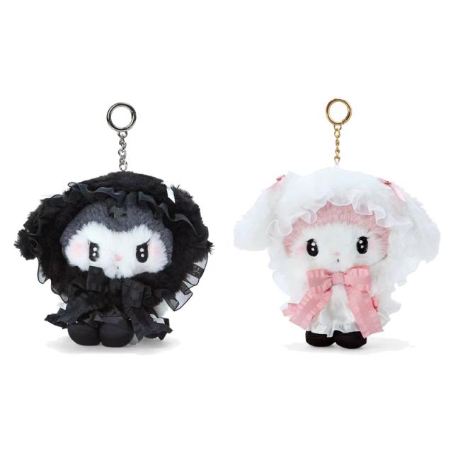 こちらは「月夜のメロクロ」シリーズをイメージした、クロミ風+マイメロディ風のぬいぐるみキーホルダーセットです。