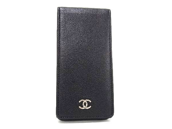 CHANEL シャネル iPodケース ココマーク ブラック系 キャビアスキン ユニセックス シルバー金具 超美品【本物保証】