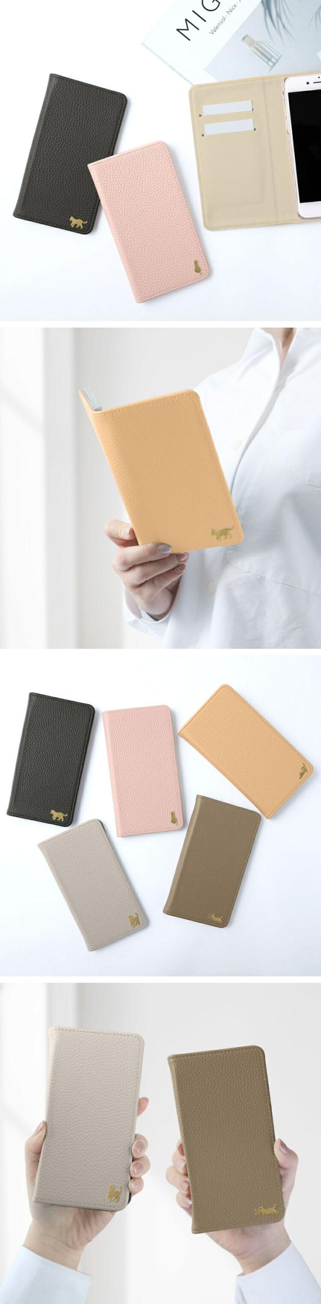 | ■おしゃれなダスティカラーの手帳型スマホケース 本革と比べて軽量で、メンテナンスも不要の上質なレザー調素材を採用。 年齢や性別を問わず使いやすい、ベーシックなデザイン。 ワンポイントで可愛らしいゴールドのネコパーツがアクセント♪ ベルトやマグネットがついていないので、片手でラクに開閉できます。 内側には収納ポケットがあり、ICカードやポイントカードなどの収納に便利。 |
