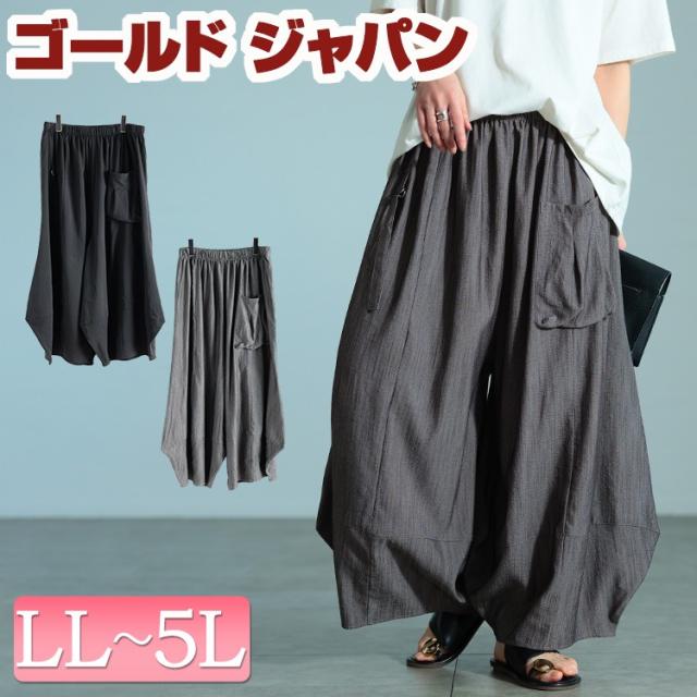 春新作 大きいサイズ レディース パンツ ズボン ビッグポケットバレルパンツ ボトムス ロングパンツ バレルパンツ ワイドパンツ バレル ワイド ロング ポケット ウエストゴム バルーン ストレッチ 春服 夏服 秋服 冬服 LL 2L 3L 4L 5L グレー ブラック 黒 ゴールドジャパン
