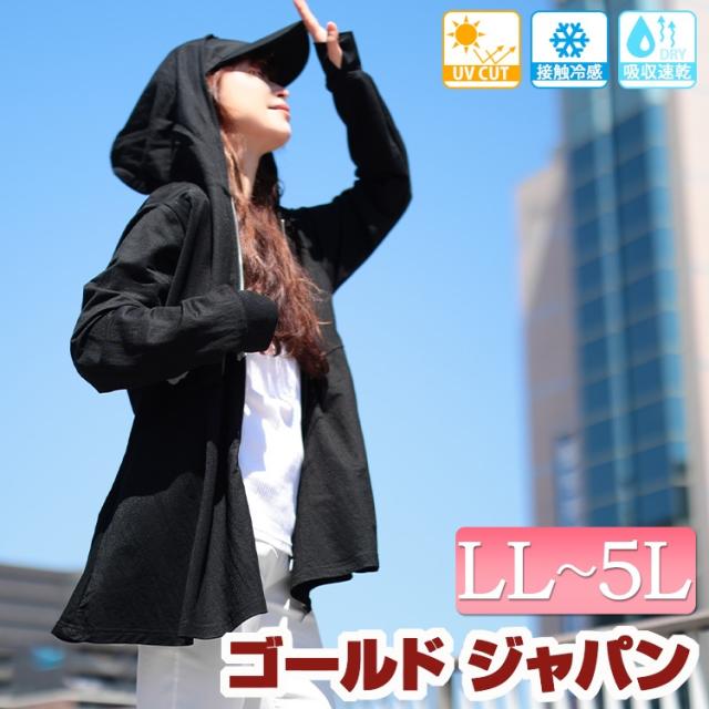 春新作 大きいサイズ レディース トップス パーカー 接触冷感&UVカット&吸水速乾ペプラムパーカー フーディー ジップ 接触冷感 UV 吸水速乾 吸水 速乾 ペプラム フレア ポケット ロング 前開き ストレッチ 春服 夏服 秋服 LL 2L 3L 4L 5L ブラック 黒 ゴールドジャパン