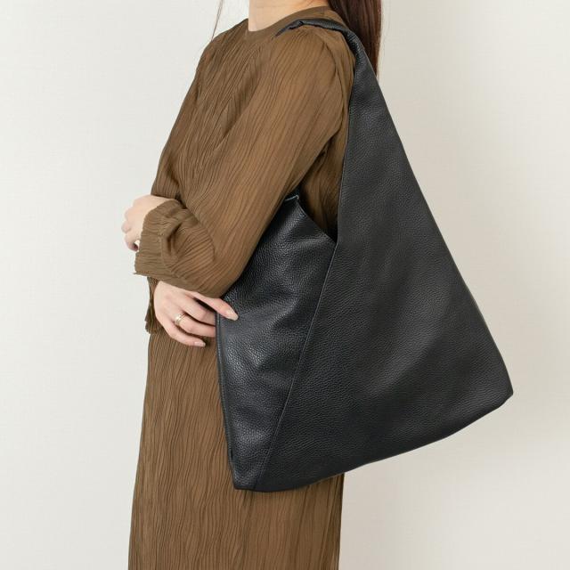 W42×D1.5×H49のゆとりあるサイズ感で、存在感のあるワンハンドルバッグです。