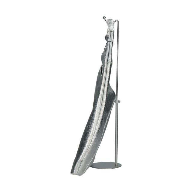 カラーはブラック・ホワイト・シルバーの3色展開で、シンプルな装いからモードなスタイルまで幅広く合わせやすい一品です。