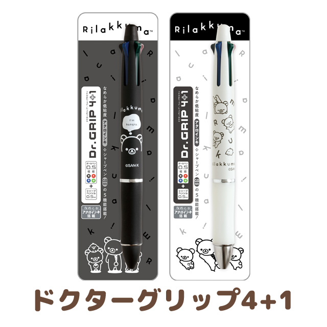 (4月下旬〜5月上旬入荷予定) リラックマ BASIC RILAKKUMA MONOCHROME ドクターグリップ4+1 ボールペン黒赤青緑+シャープペンシル0.5mm PR16501/PR16502