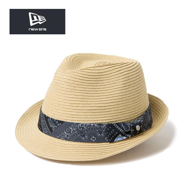 ニューエラ ハット 麦わら帽子 トリルビー ブルーペイズリーテープ ナチュラル ベージュ