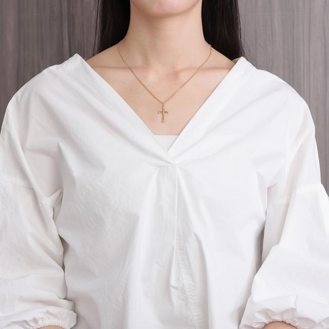 18金 クロス 十字架 ペンダントトップ 25.4mm - 16.6mm ゴールド メンズ レディース プレゼント ギフト アクセサリー ヘッド チャーム