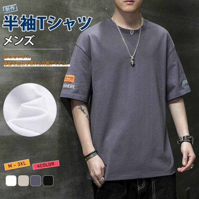 夏新作 tシャツ メンズ 半袖Tシャツ 夏服 カットソー 丸首 綿 コットン 無地 大きいサイズ ゆったり おしゃれ カジュアル シンプル 通気性 人気 春 夏 通勤 通学