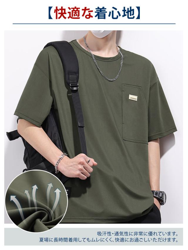 夏新作 tシャツ メンズ 半袖Tシャツ アイスシルク 涼感 かっこいい 快適 夏服 カットソー 無地 大きいサイズ ゆったり おしゃれ カジュアル 春 夏 通勤 通学