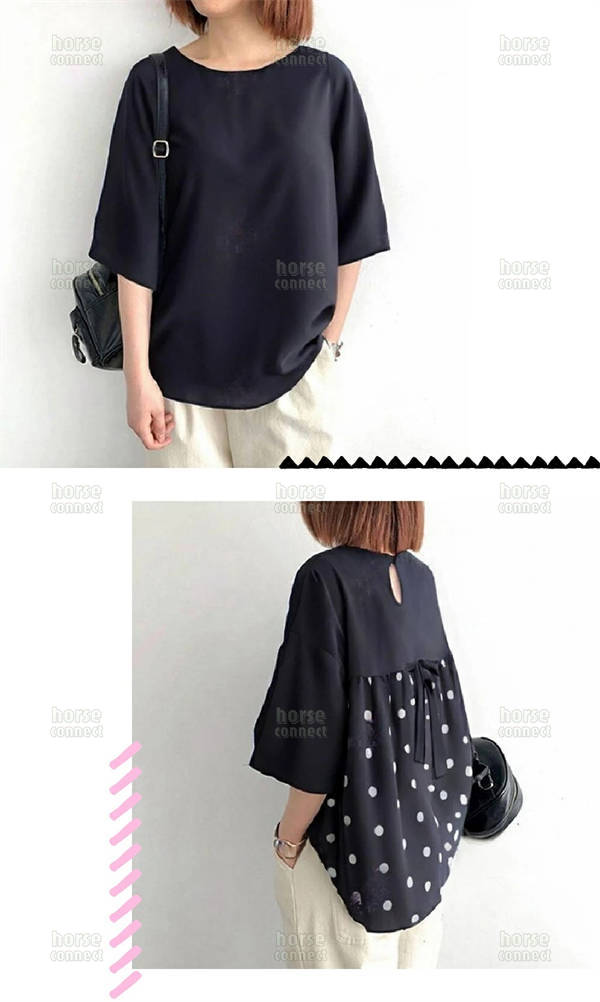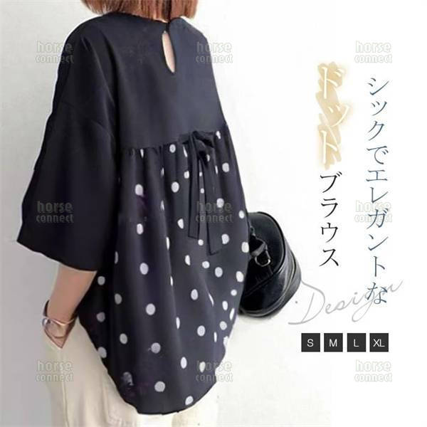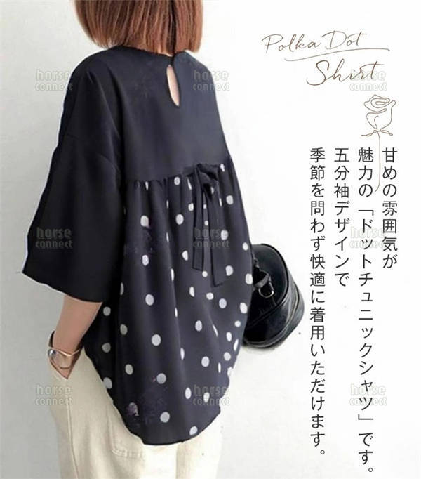 tシャツ ブラウス Tシャツ 半袖 ラウンドネック 切り替え ブラウス tシャツ Tシャツ 丸首 ドット柄 オシャレ きれい カジュアル レディース チュニック 大人 かわいい 大きいサイズ ゆったり 春 夏 夏ブラウス 20代 30代 40代 50代 可愛い