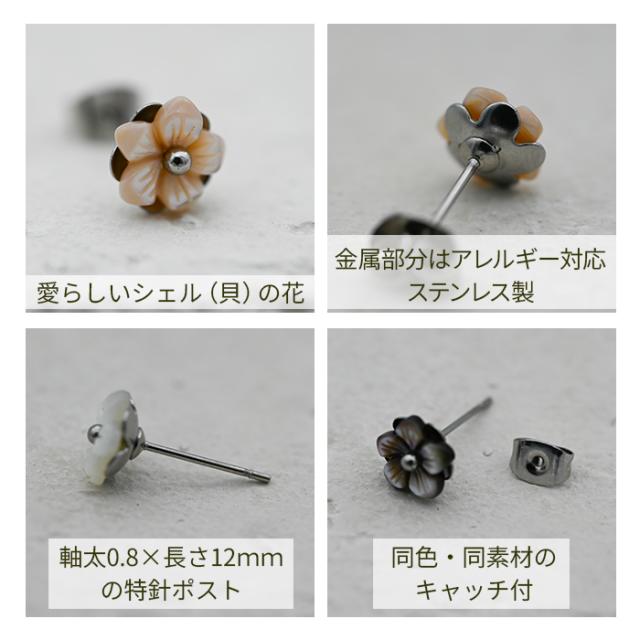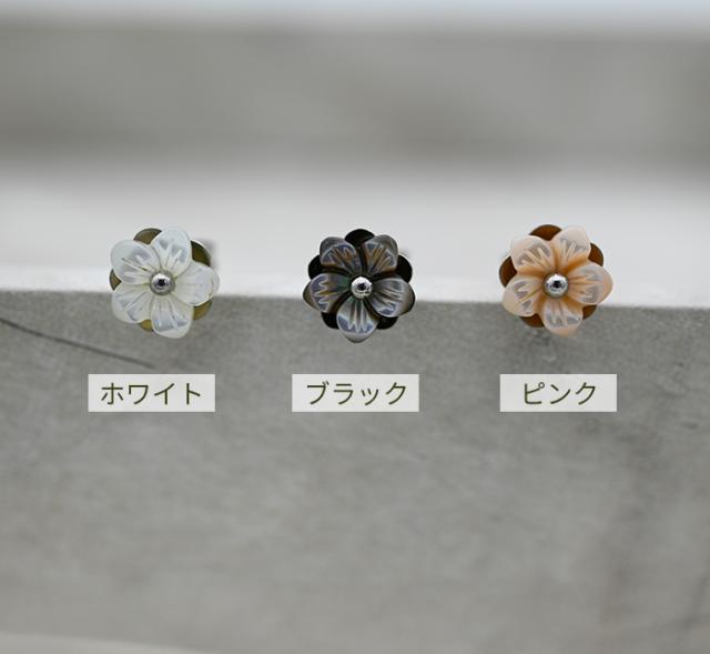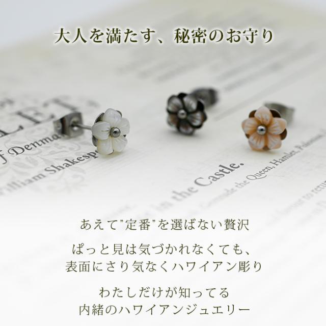 ピアス 金属アレルギー対応 花 モチーフ ハワイアンジュエリー 片耳用 1個売り サージカルステンレス 316L 大ぶり フラワー ピンク ブラック ホワイト 大人 可愛い