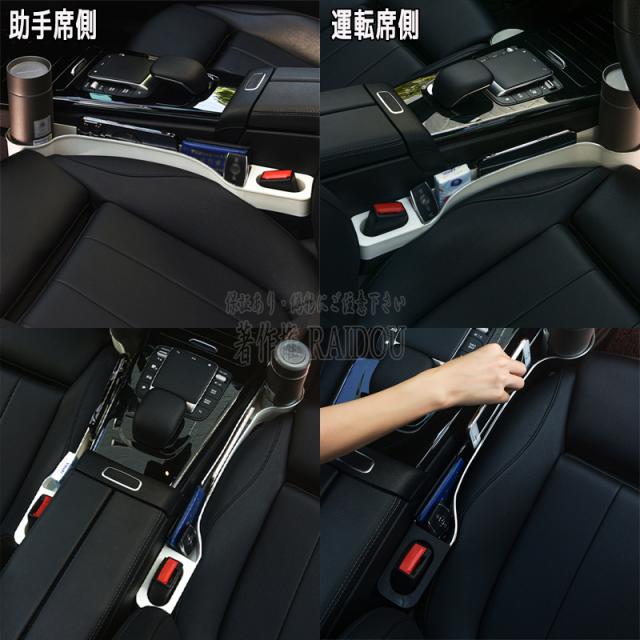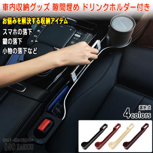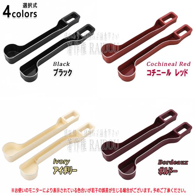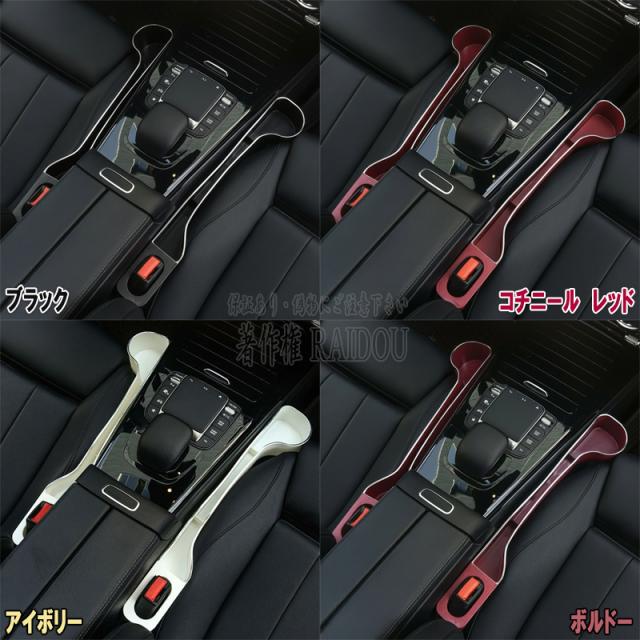 【商品詳細】シート隙間埋め 運転席側・助手席側セット 収納ポケットとドリンクホルダー付き。小物やゴミの落下により取れなくてイライラをされた方は必見です。センターコンソールとシートの隙間をしっかりガードし、スマホや財布、小銭、キーケース等の落下防止に役立ちます。【商品内容】運転席側:1本助手席側:1本【選択カラー】・ブラック・コチニールレッド・アイボリー・ボルドー【簡単取付方法】シートベルトバックルに商品側のフックを引っ掛けて隙間を埋めてください。※取り扱い説明書は御座いませんので、ご了承下さい。※コンソールボックスがないお車には装着できません。