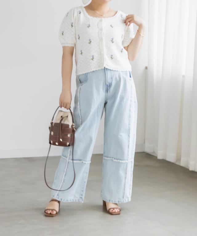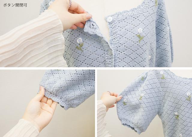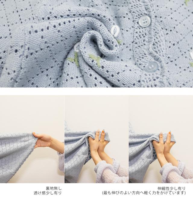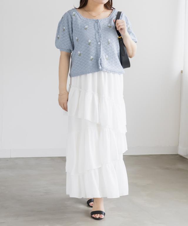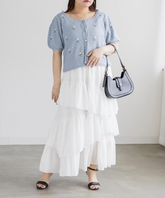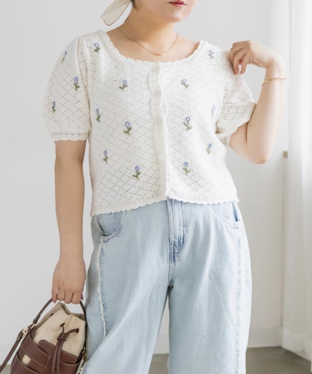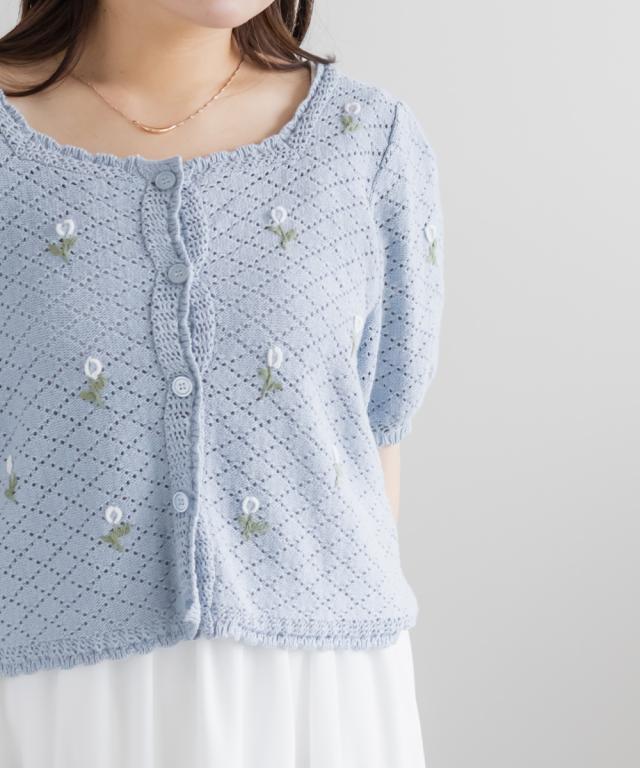 | LLサイズを着用してぴったりのサイズでした。透かし編みのざっくり感がかわいいカーディガンで、トップスとしても羽織としても着回しできる万能アイテムです!花柄の刺繍がポイントになってとっても可愛いです◎スカートやパンツはもちろんワンピースにも相性良くコーデできます♪春〜夏のシーズンに合う風合いが可愛くて、お出かけにたくさん着回ししたい1枚です! |