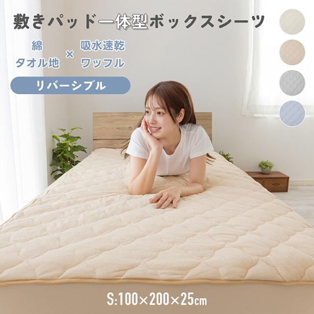 敷きパッド一体型ボックスシーツ シングル 綿100% パイル 吸湿 タオル地 コットン リバーシブル 吸水速乾 ニットワッフル オールシーズン シーツ マットレスカバー 敷きパッド一体型BOXシーツ 敷パッド 敷きパット 敷パット 抗菌防臭 防ダニ 春 夏 秋 冬 25S084