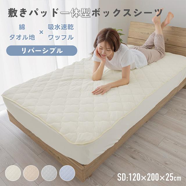 敷きパッド一体型ボックスシーツ セミダブル 綿100% パイル 吸湿 タオル地 コットン リバーシブル 吸水速乾 ニットワッフル オールシーズン シーツ マットレスカバー 敷きパッド一体型BOXシーツ 敷パッド 敷きパット 敷パット 抗菌防臭 防ダニ 春 夏 秋 冬 25S085
