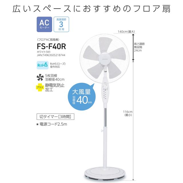 フロア扇風機トヨトミ TOYOTOMI ホワイト FS-F40R-W フロア扇 リビング扇風機 ACモーター ハイポジション 大風量 ホワイト