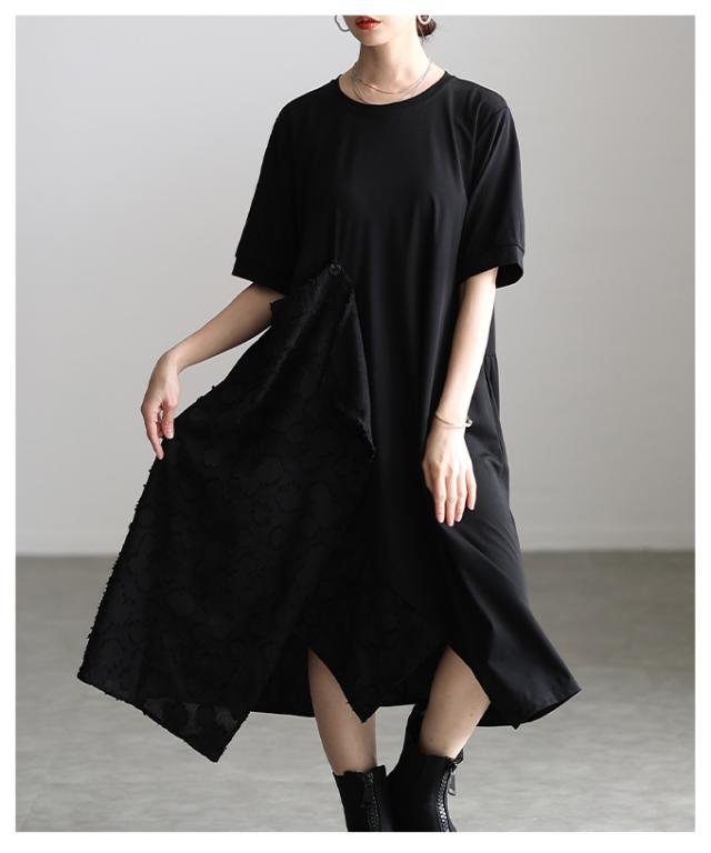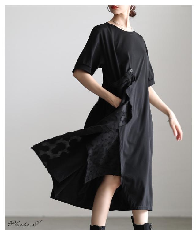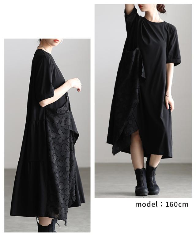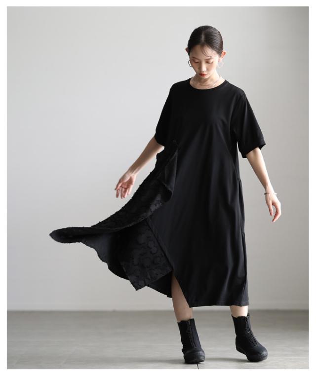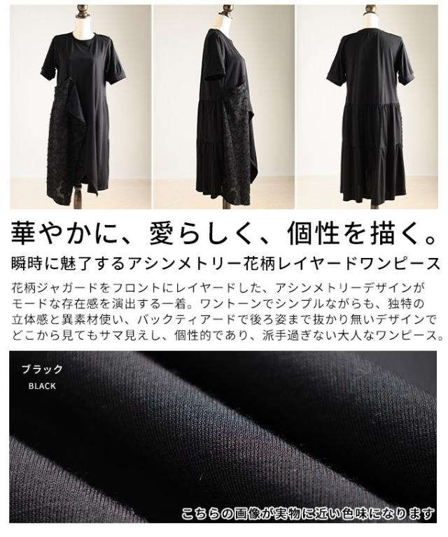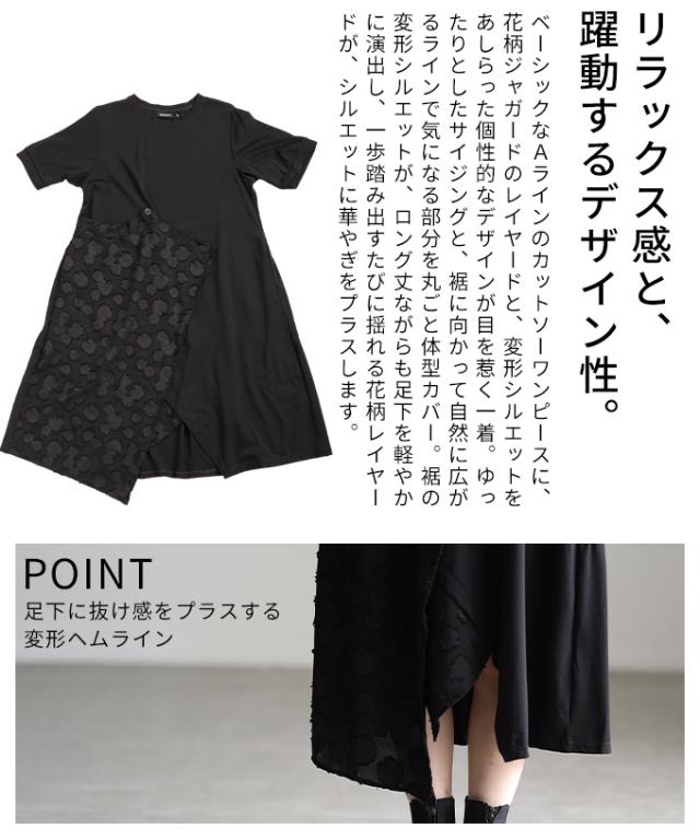 春新作 瞬時に魅了するアシンメトリー花柄レイヤードワンピース レディース ファッション ワンピース カットソー アシンメトリー 花柄 ジャガード レイヤード 変形 半袖 30代 40代 50代 60代 アラモード alamode otona 大人 cawaii 可愛い 洋服 かわいい服 mode-10165