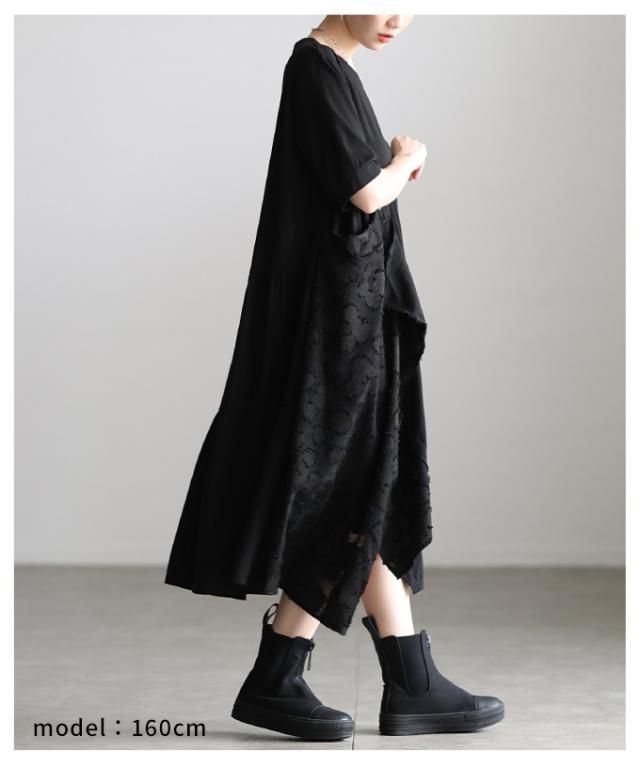 特徴: 異素材 花柄 ジャガード レイヤード アシンメトリー ティアード イレヘム 変形