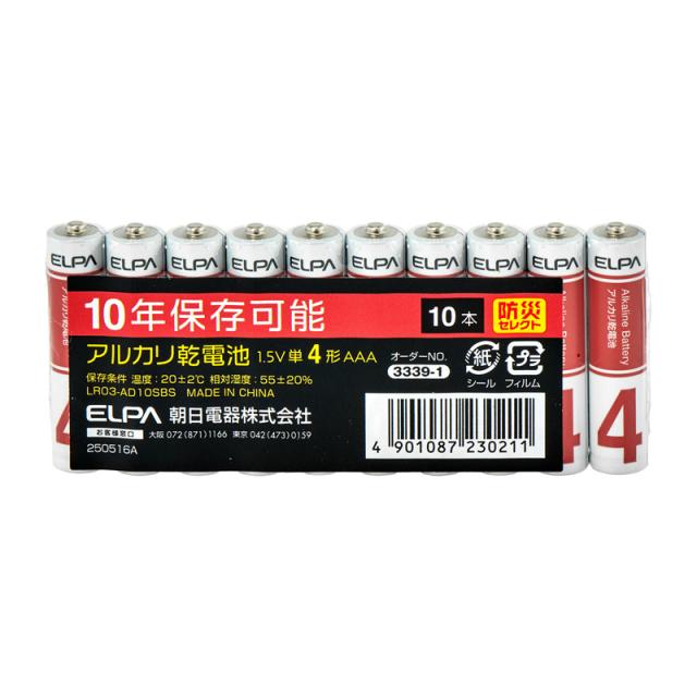 アルカリ電池 単4×10本 防災備蓄 10年保存 LR03-AD10SBS エルパ(ELPA)