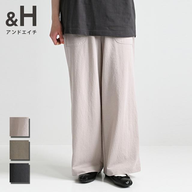 【&H アンドエイチ】綿ナイロンワイドパンツ | &H レディース ワイドパンツ タック ウエストゴム 夏 カジュアル