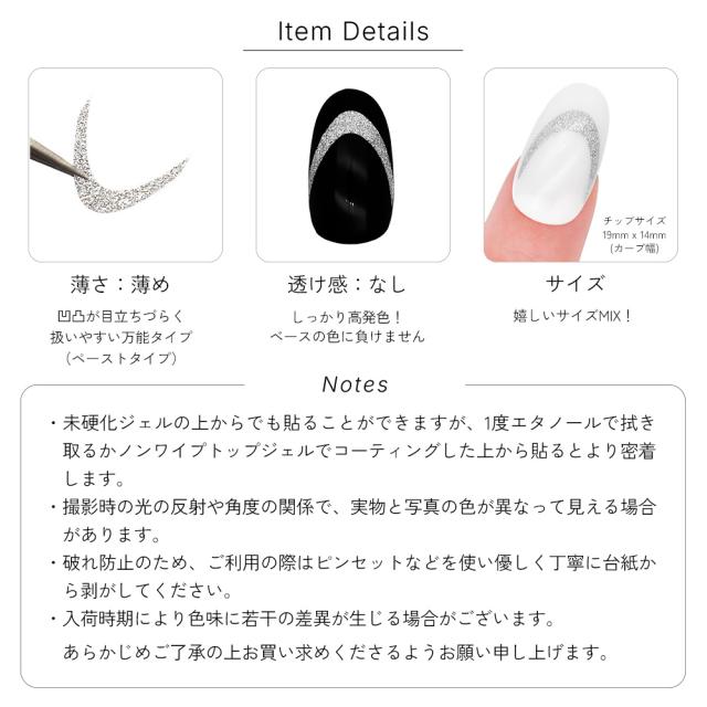 ・未硬化ジェルの上からでも貼ることができますが、1度エタノールで拭き取るかノンワイプトップジェルでコーティングした上から貼るとより密着します。