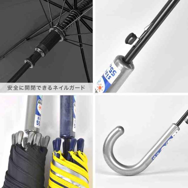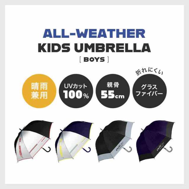 晴雨兼用 傘 子供 男の子 紫外線カット 長傘 キッズ 55cm 雨傘 シルバーギア バイカラー 日傘 男子 小学生 ジャンプ傘 キッズ傘 UVカット 100% UPF50+ 完全遮光 遮熱効果 ブラック ネイビー ブラックコーティング 暑さ対策 熱中症対策 軽量 グラスファイバー 梅雨 夏 通学