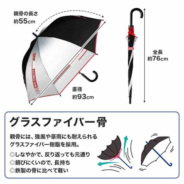 親骨には軽くて丈夫なグラスファイバーを使用し、風に強く折れにくいのも嬉しいポイント。錆びにくく長く使える設計です。ワンタッチでパッと開けるジャンプ式だから誰でも簡単操作◎