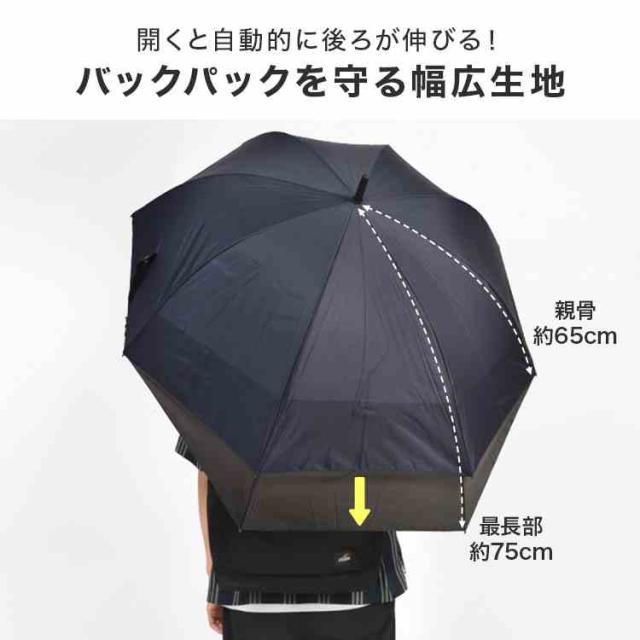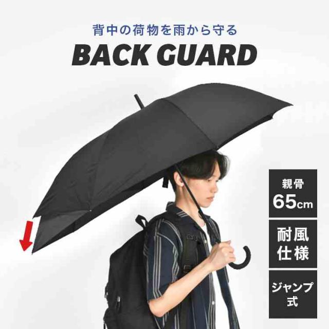 メンズ 傘 バックガード 長傘 65cm 大きめ 丈夫 傘 リュック 濡れない 後ろが伸びる 風に強い 折れにくい 男性 大人 グラスファイバー 大きい 軽量 ジャンプ傘 通勤 通学 ビジネス 大判 雨傘 背中 カバー シンプル 無地 大きめ 黒 ブラック ネイビー 機能的 梅雨 雨対策 耐風