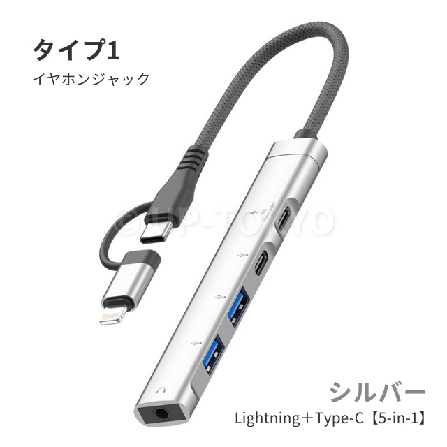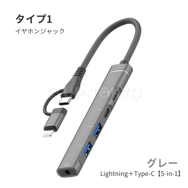USBハブ iPhone iPad 専用 Lightning タイプC 両用 SDカードリーダー ジャック付き(3.5mm) 5in1 アプリ不要 カメラリーダー microSD iPhone/iPad Mini Air Pro対応 アイフォン アイパッド ライトニング USBメモリ 接続 写真 移動 にも使える