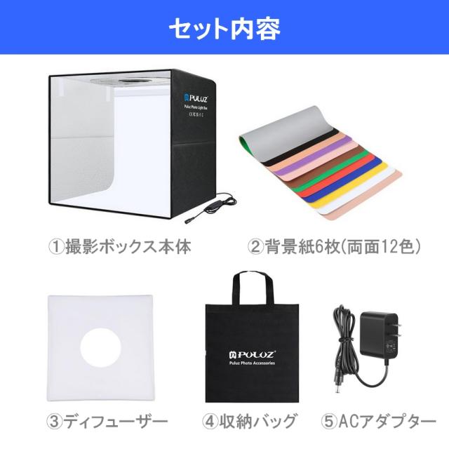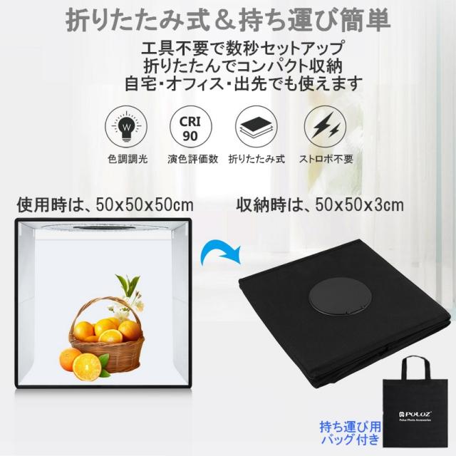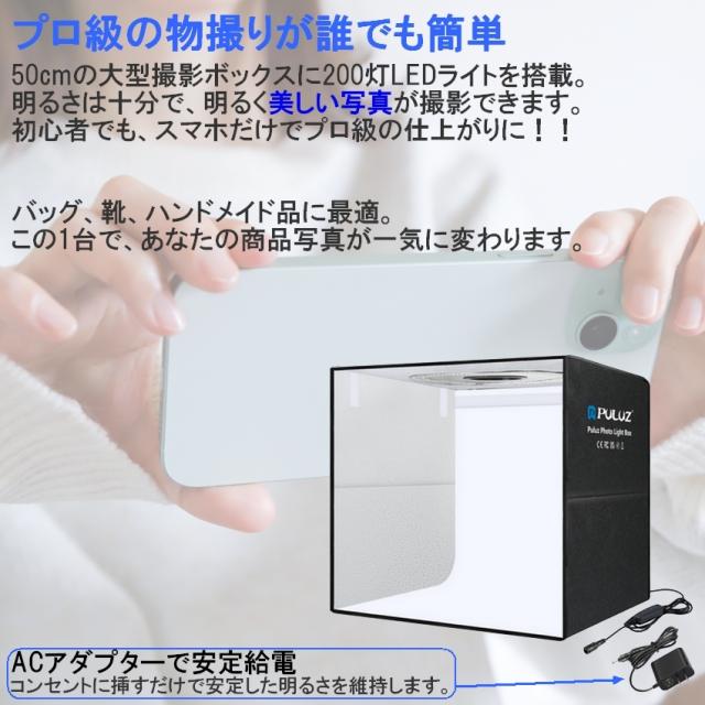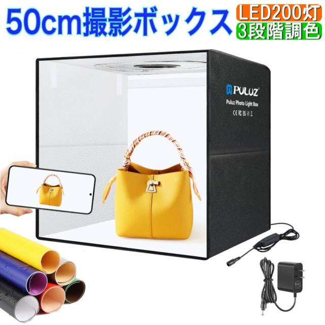撮影ボックス 50cm LEDライト付 撮影キット 200灯 10段階調光 12色背景 折りたたみ 撮影ブース 商品撮影 物撮り 簡易スタジオ ACアダプター PULUZ 送料無料