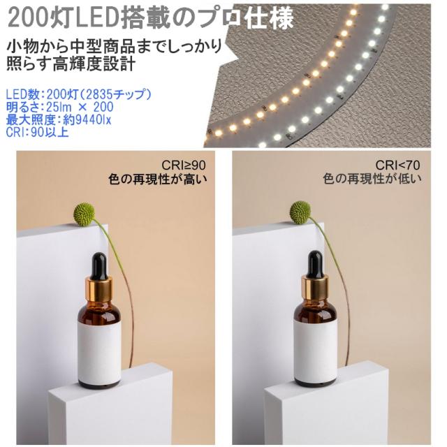 LED 撮影ボックスとして高輝度200灯ライトを搭載し、フリマやネットショップで使える高品質な商品撮影 ボックスとして活躍します。