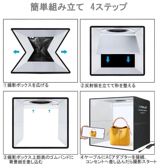 初心者でもプロ級の写真が簡単に撮れる撮影ボックス50cm大型サイズの撮影キットです。