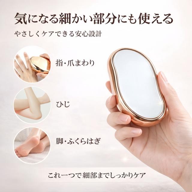 撫でるだけで古い角質とムダ毛を同時に処理できます。