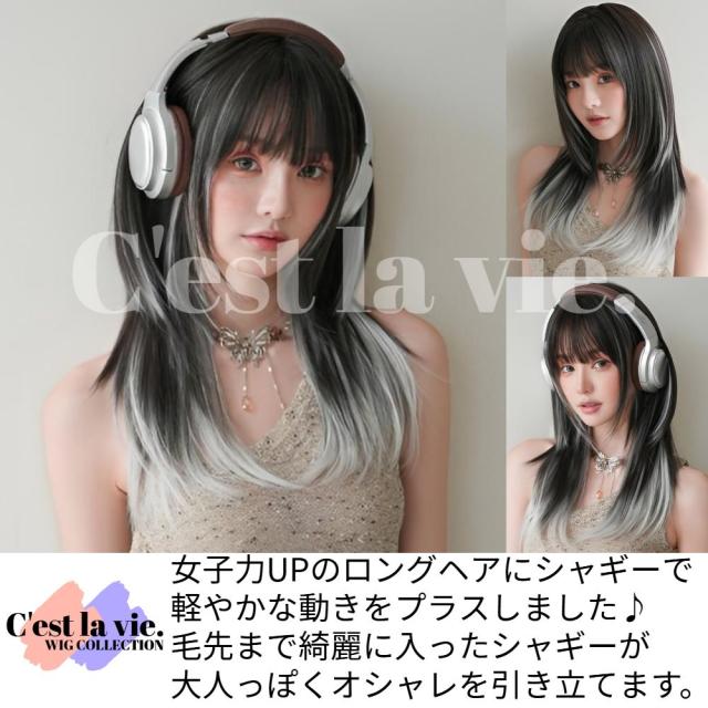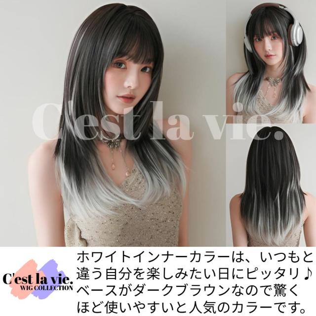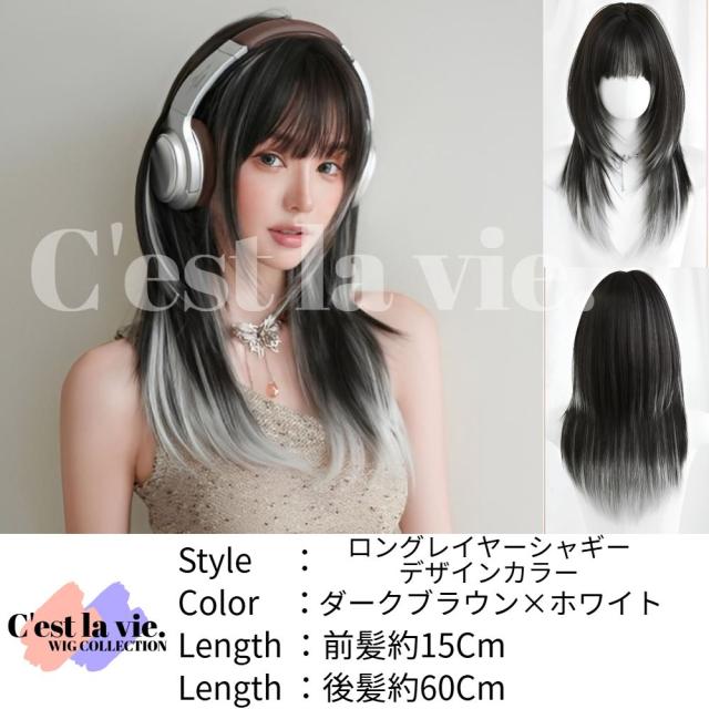 ウィッグ ロング レイヤー シャギー インナーカラー ブラウン ホワイト フルウィッグ 前髪あり 医療用 かつら ネット付き 自然 バレない 普段使い 即日出荷 送料無料