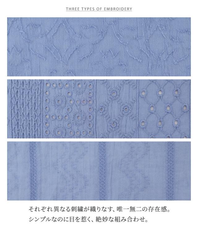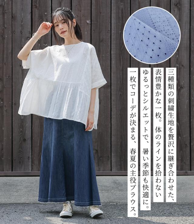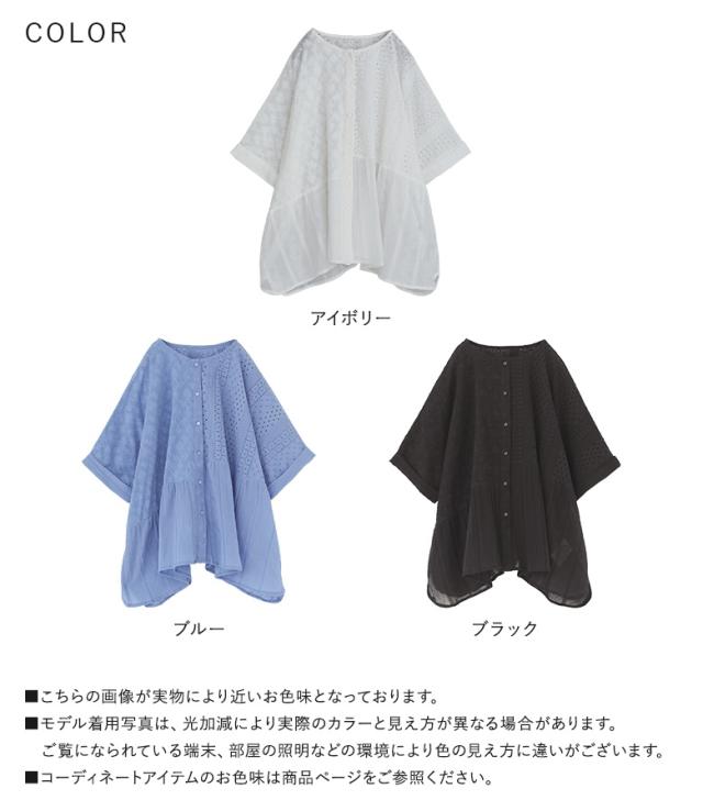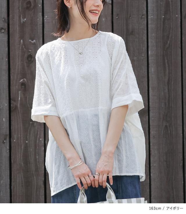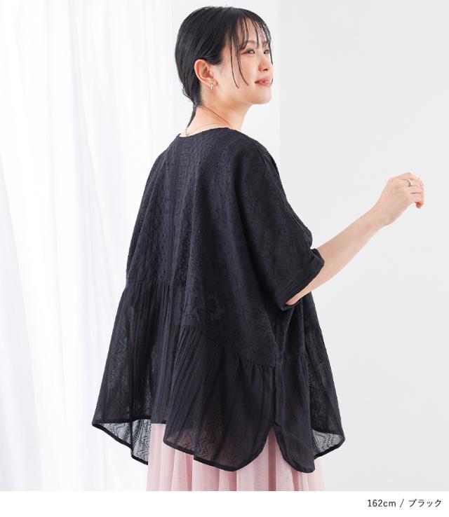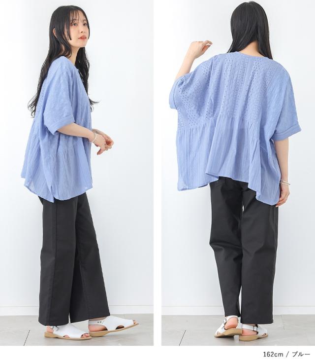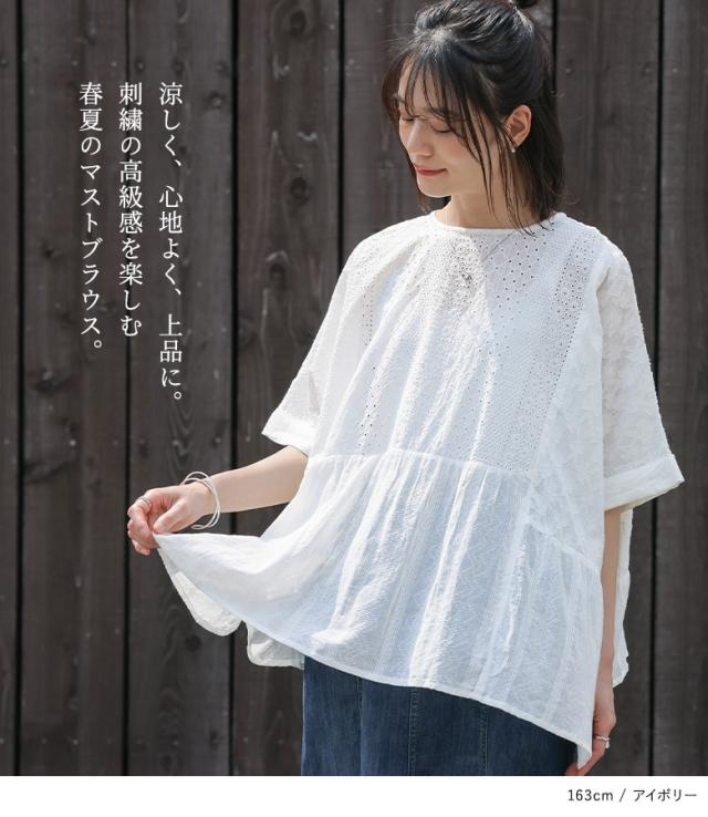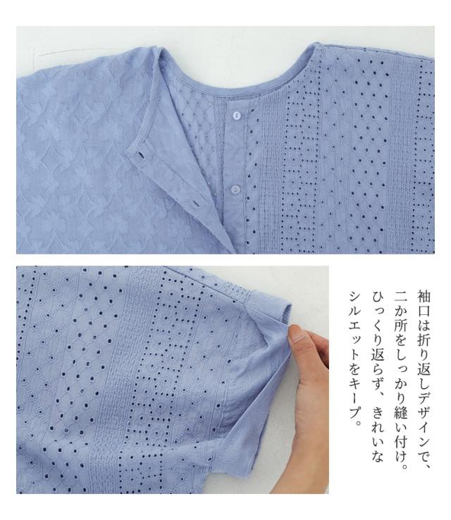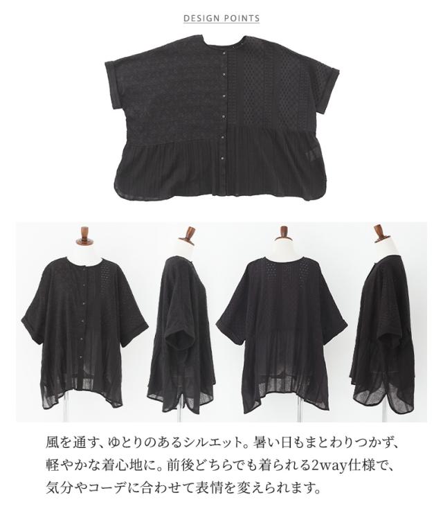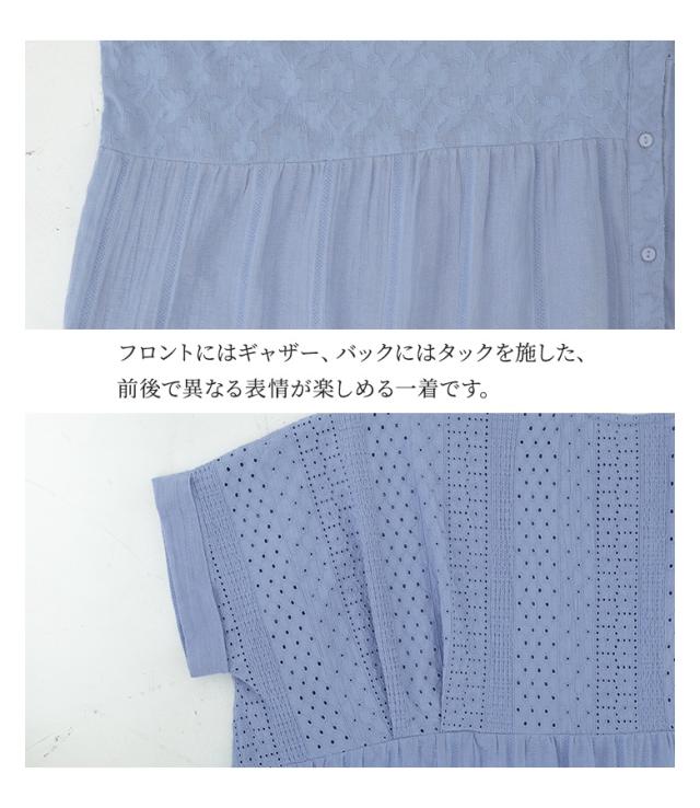 【P10倍】<春新作>『前後2way総刺繍パネル切替ブラウス』【メール便不可】【20】[ブラウス レディース トップス 半袖ブラウス バンドカラー シャツ 刺繍 ギャザー タック 春 夏 オシャレウォーカー]