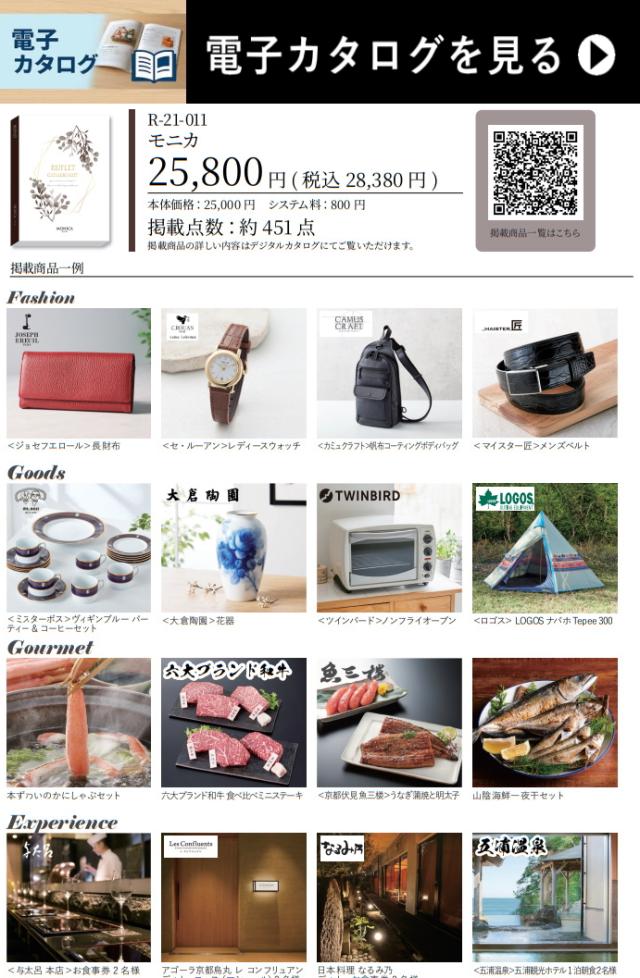 25800円コースでは、心温まる贈り物を選べる充実した商品ラインナップをご用意。