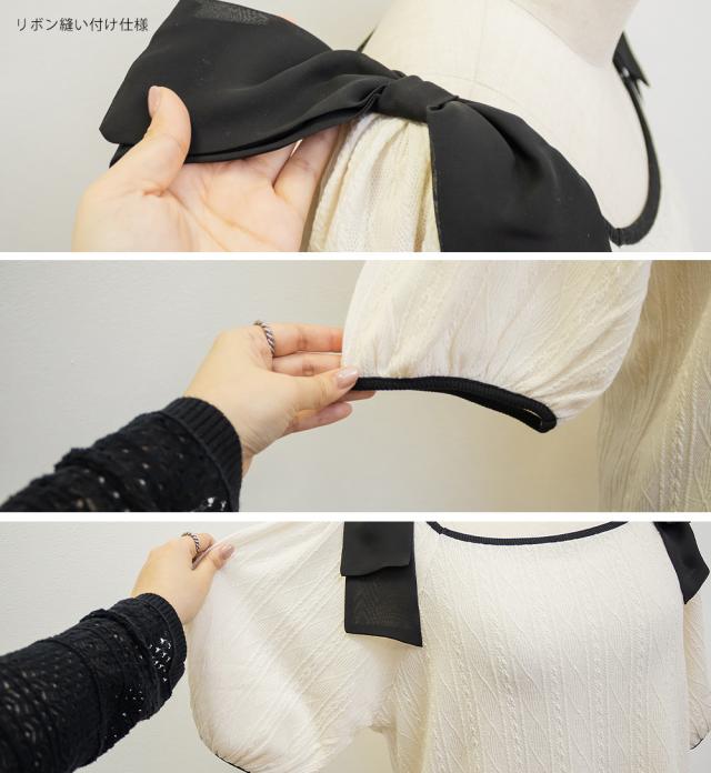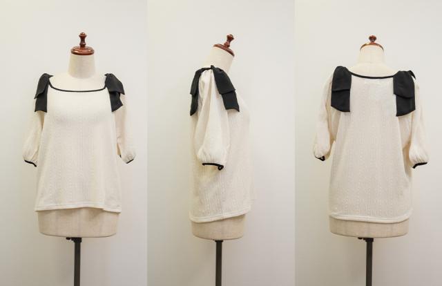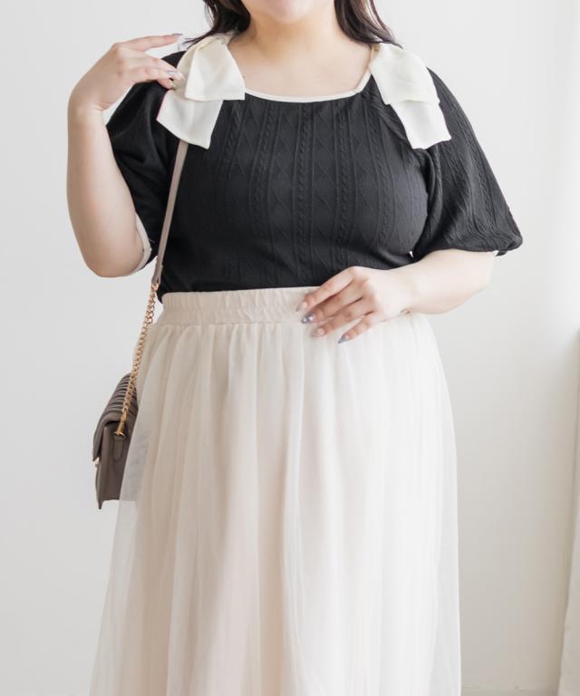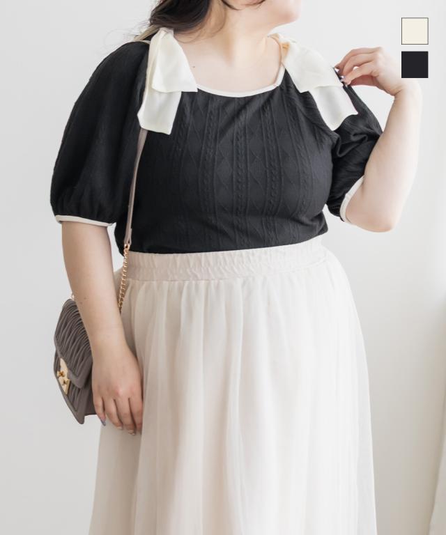 大きいサイズ/レディース/3L/4L/5L/肩リボンふくれジャガードプルオーバー