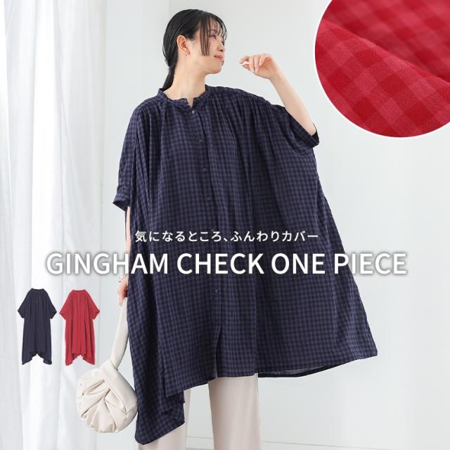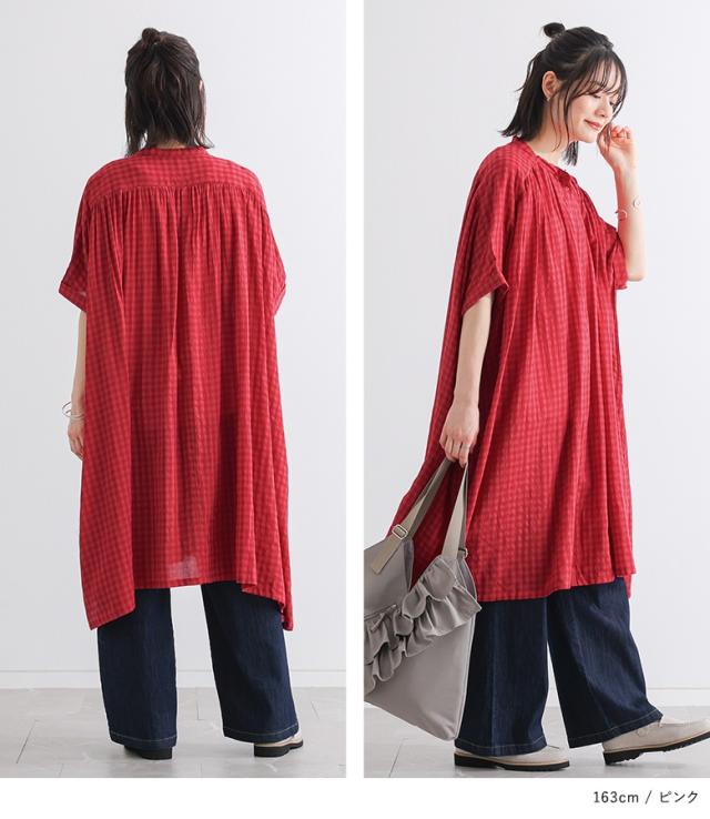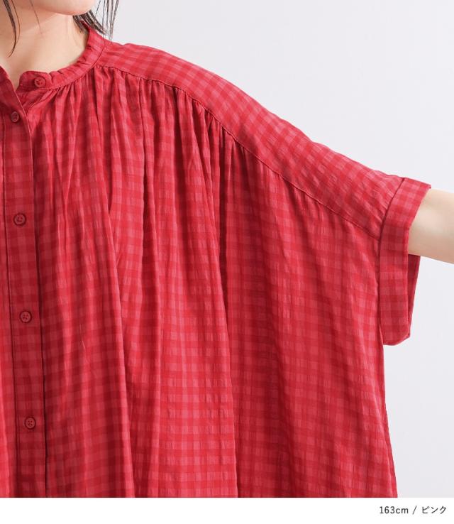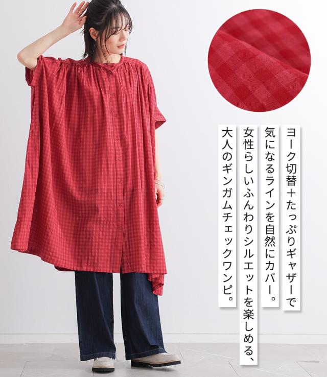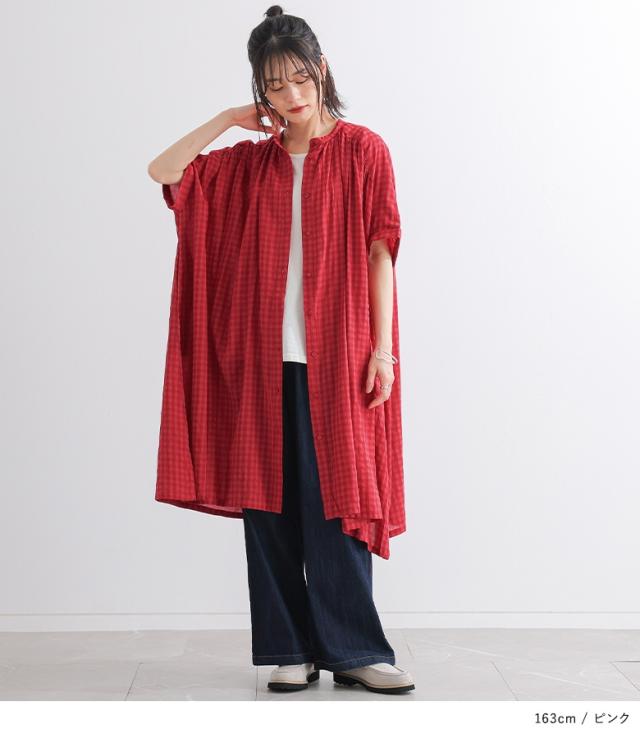 ワンピース レディース 半袖ワンピース ロング丈シャツ 羽織り バンドカラー チェック柄 ギャザー 春 夏 オシャレウォーカー 【TP】 トップス シャツ ロングシャツ 半袖シャツ ボタンシャツ 前開きシャツ 羽織 5分袖ワンピース シャツワンピース シャツワンピ 半袖 五分袖 ヨーク ギンガムチェック 配色 洗える おうちで洗える 薄手 涼しい カジュアル シンプル ナチュラル キレカジ フェミニン ガーリー 可愛い系 大人女子 大人可愛い お洒落可愛い 大人カジュアル ベーシック ニュアンス ラフ ゆったり ゆる 楽ちん ストレスフリー 動きやすい お尻が隠れる 二の腕カバー Sサイズ Mサイズ Lサイズ 10代 20代 30代 40代 50代 60代 低身長 高身長 女子会 オフィス 通勤 通学 お買い物 お出掛け 旅行 おしゃれ お洒落 トレンド 流行 osharewalker ピンク 桃色 桃 レッド 赤色 赤 ネイビー 紺色 紺[ID]11dp016[ギンガムチェック5分袖ワンピース]