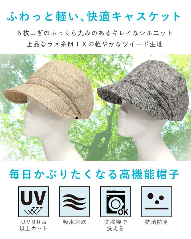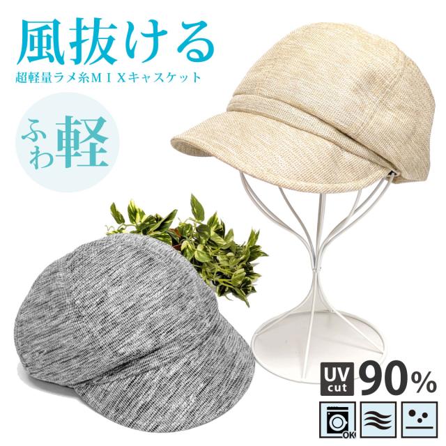 風抜ける キャスケット 涼しい ふわっと軽い ラメ糸MIX つば幅広 UV90%カット 56-58cm 深め 帽子 レディース 小顔 キャップ 暑さ対策 hat-1559 風に飛ばない UV 春夏 日焼け防止 お洒落 洗濯機対応 焼けない 母の日 即納【メール便送料無料】
