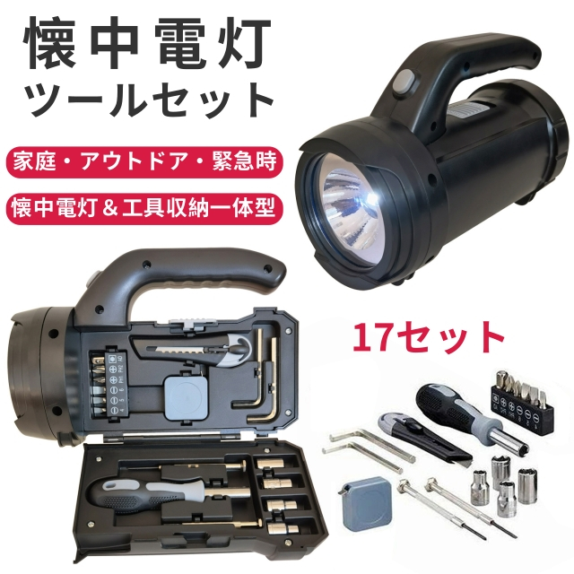 懐中電灯 懐中電灯ツールセット 修理ツール 懐中電灯&工具収納一体型 17点セット AA電池式 防災グッズ LEDライト 防災 停電 地震 災害用 アウトドア キャンプ