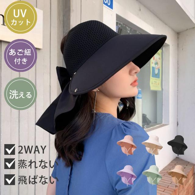 日よけ帽子 ハット レディース 完全遮光 UVカット率100% つば広 日よけ帽子 サンバイザー 2WAY あご紐付き 飛ばない 小顔効果 大きいサイズ ポニーテール穴付き 軽量 通気性 折りたたみ 首までしっかりガード 自転車 アウトドア 通勤 通学
