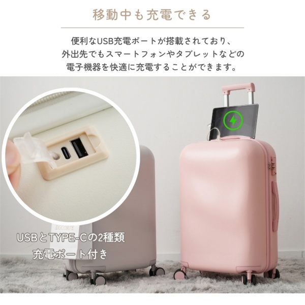 スーツケース 軽量 キャリーバッグ USBポート付き TSAロック ストッパー付き ダブルキャスター スムーズ 静音 静か 頑丈 海外 修学旅行 女性 新幹線 大容量 かわいい 旅行 国内 小型 1~3宿泊